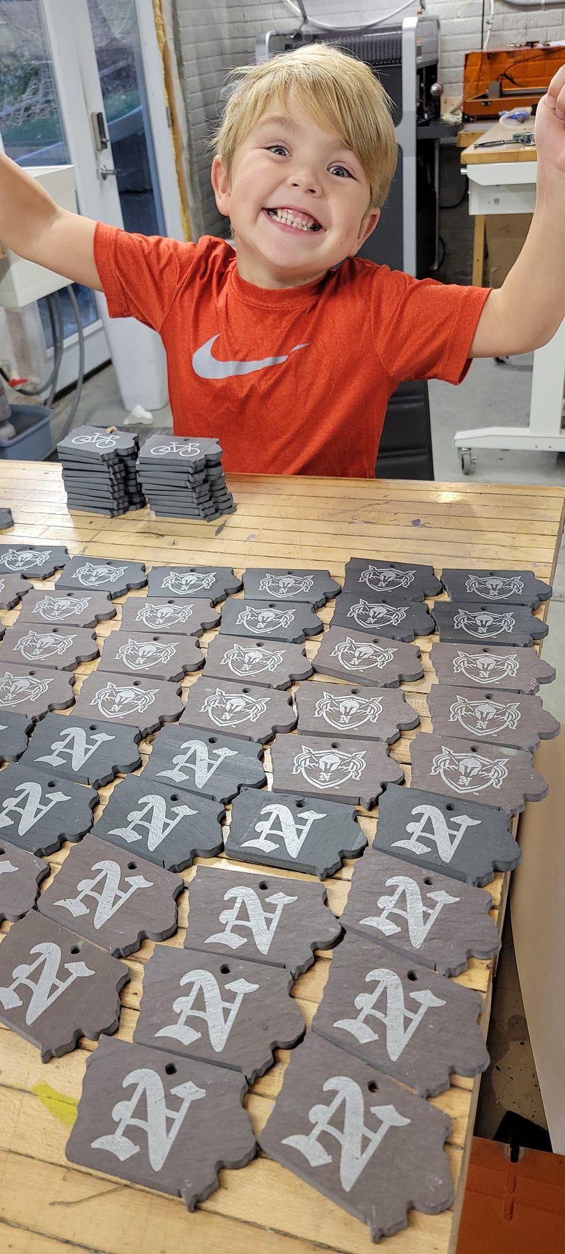 Our coasters are made from natural USA slate and are free of sealants. Each design is hand-stamped with permanent ink that will not fade or scratch off. Our slate is kept natural and free of sealants. The edges are rough and chipped, while the top and bottom can be smooth, rough, shiny, or two-toned. It is discolored and imperfect by nature. Slate is extremely durable, functional and easy to clean. It can withstand both hot and cold temperatures while retaining most of your beverages condensation.